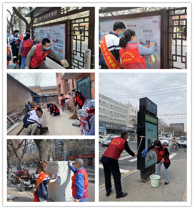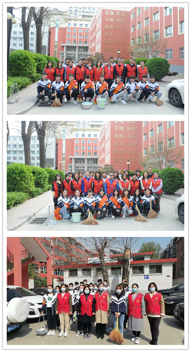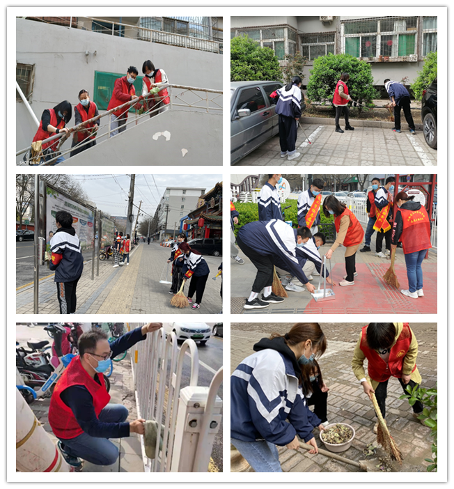 2021年4月6日下午,我校师生志愿服务队第三、第四、第五、第六小组的近百名师生参加了由营盘街道并南二社区联合开展的“三化工程”志愿服务活动,分别对狄村街两侧便道和电机厂一小区、二小区进行了打扫,包括捡拾烟头,清扫垃圾和落叶,清理小广告、水渠和井盖污垢,擦拭道路栏杆、公共宣传栏、站牌、垃圾箱、绿化带护栏、公交自行车桩等。