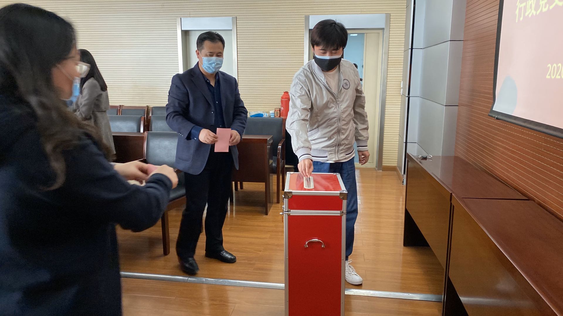 会上,原支部书记张伟同志向大家汇报了三年来支部的主要工作和存在的不足,审议通过了《行政党支部换届选举办法(草案)》,按照选举办法的有关规定,到会党员同志以无记名投票的方式,选举产生了新一届支部委员会。随后,新一届支部委员召开第一次支委会,确定了支委分工。