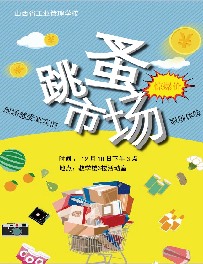 2019年12月10日下午3点,我校活动室人身鼎沸,热闹非凡,这里正在举办电子商务专业学生职业体验实训活动——跳蚤市场。