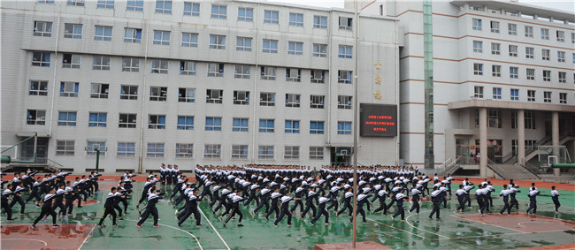 在庄严的升旗仪式后,校长王黎明在军训教官的陪同下进行方队检阅。随后各连进行了分列式汇报表演。同学们用一项项精彩的军训汇报表演展现出这十天军训的丰硕成果。
