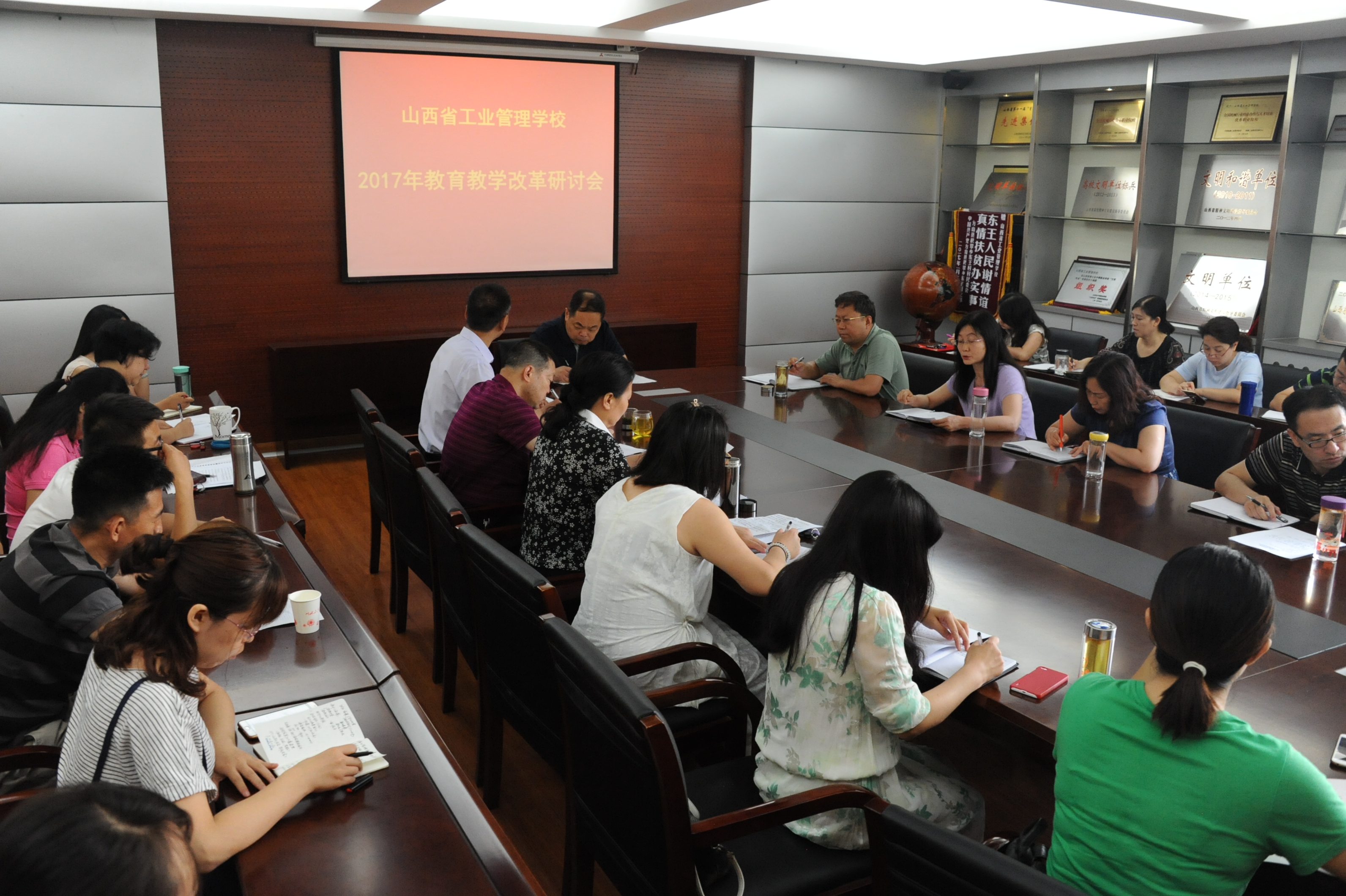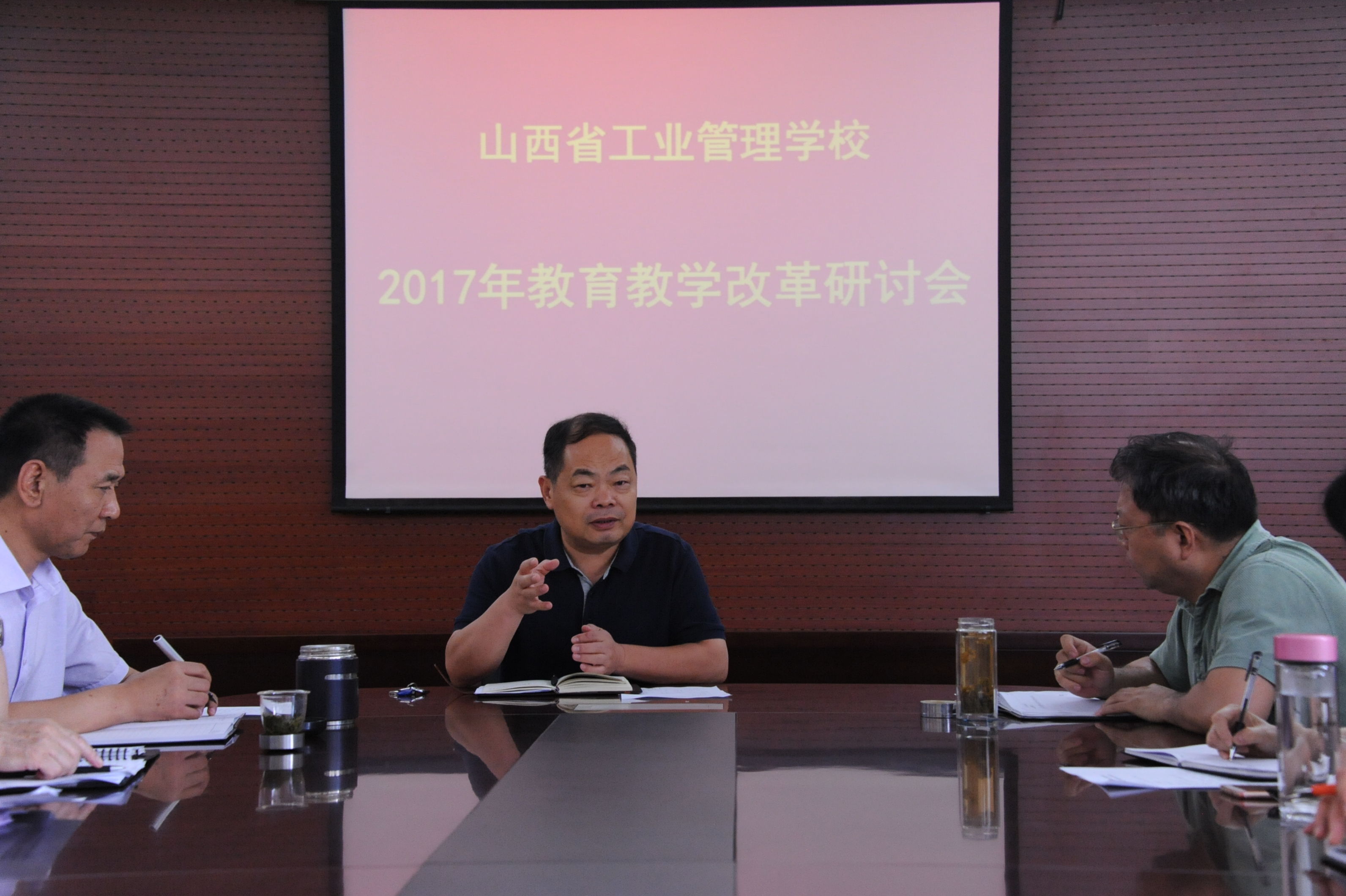 6月30日上午在二层会议室召开了“山西省古交市职业中学2017年教育教学改革研讨会”,学校领导、各专业科(部)主任、学生科、招生办、就业办负责人、教师代表及教务科全体成员共33人参加了会议,大会由教务科科长王润明主持。会议围绕强化质量意识,推进教学诊断与改进工作,提高人才培养质量、提高课堂效率、教师团队建设、专业建设与课程改革等五个方面开展研讨。