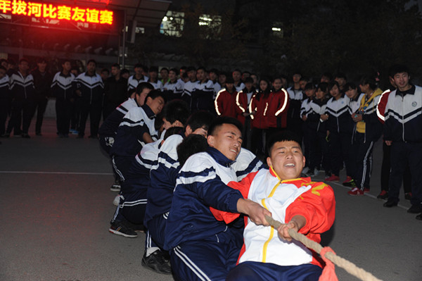 2014年11月18日,太原已经进入了冬季。初冬,不如隆冬般神圣庄严,不如金秋给人以收获的喜悦。然而它却承载着另一份美丽,让我们看到明亮的笑容和蓬勃的青春。在山西省古交市职业中学的操场上,一场激战正在拉开序幕——2014年拔河比赛。