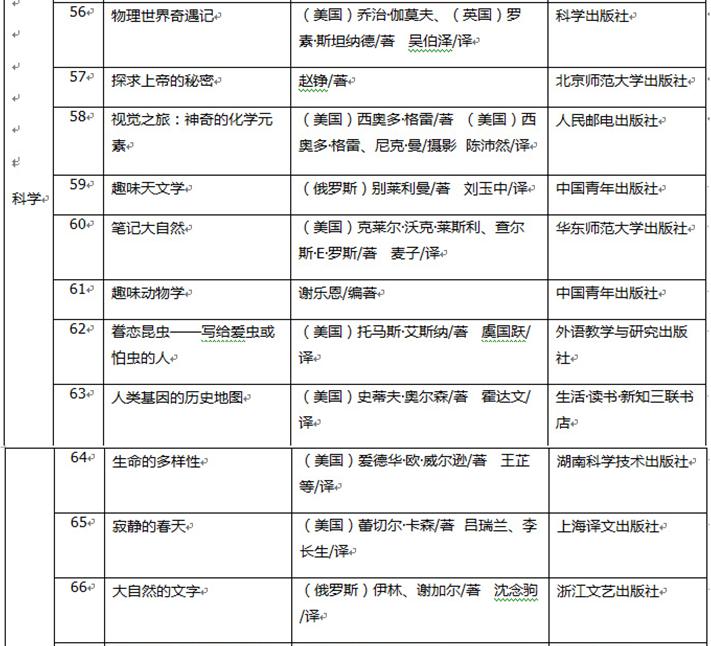 六是参考新阅读研究所研制的其他书目,注重图书选择的层级衔接性。小学已经选过的书目中,中学的就不再重复推荐。