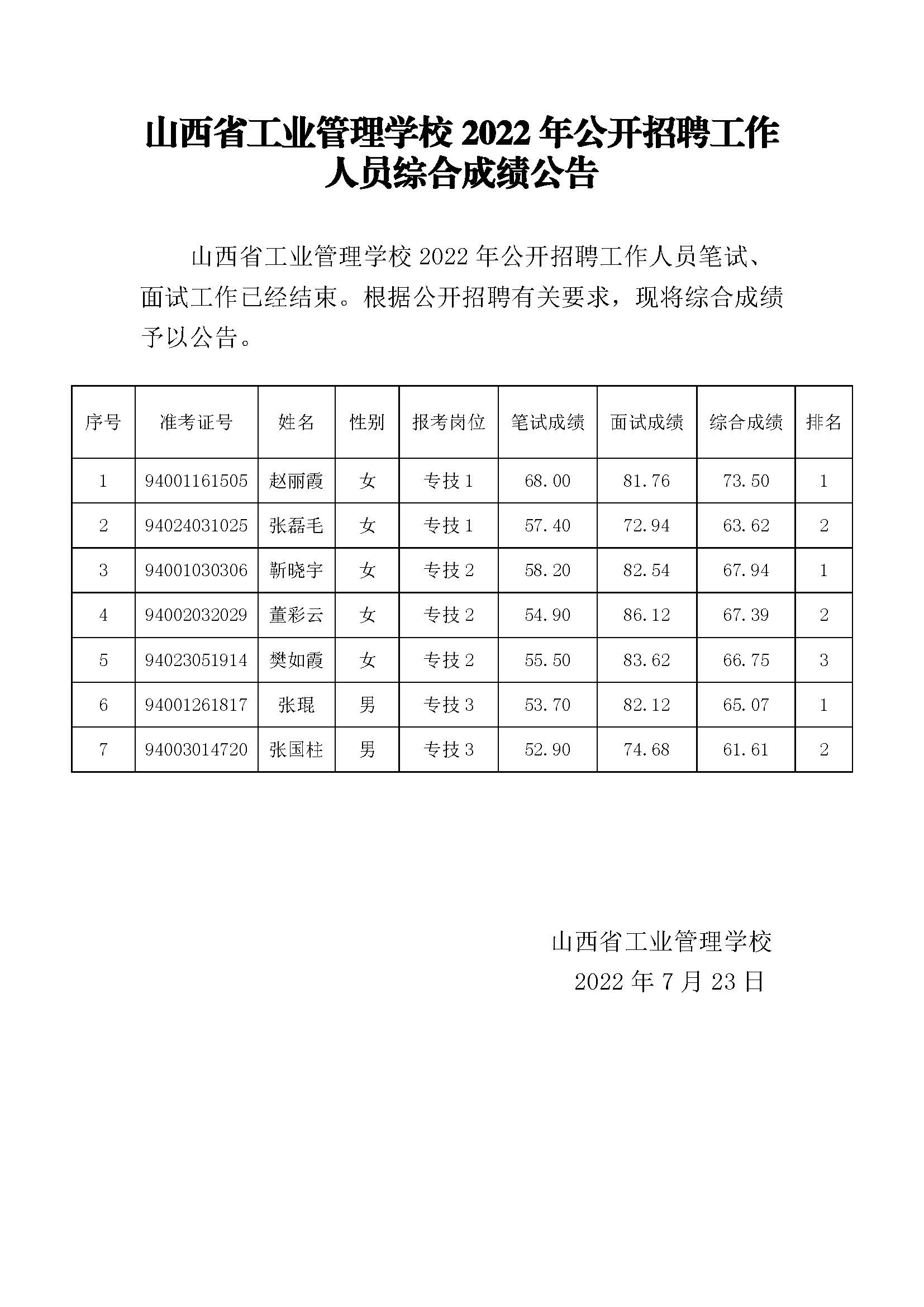 山西省古交市职业中学2022年公开招聘工作人员综合成绩公告